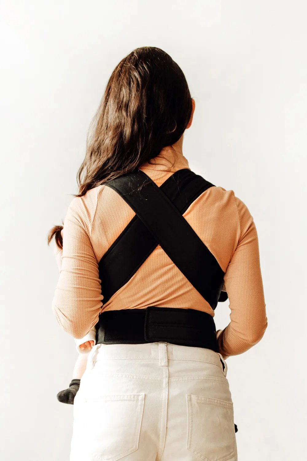 Wie im Tragetuch liegt Dein Baby in der marsupi Trage direkt auf Deinem Körper an – kein extra Beutel oder wegklappbares Rückenteil, das vom Körper wegzieht und den Schwerpunkt verlagert. Die stützende Stoffbahn verläuft außen über den Rücken Deines Kindes, die Schultergurte holen Dein Baby ganz nah an Dich heran. Du bestimmst und spürst genau, wie eng Ihr zwei es haben wollt. Die Klettverschlüsse, mit denen die Schultergurte geschlossen werden, gehen dabei über die gesamte Breite des Rückenteils, so ist Dein Baby rundum „eingewickelt“. Und das Beste: Du kannst die Gurtbänder auch mit Kind jederzeit nochmal einzeln öffnen, nachziehen und wieder fixieren, wenn Du die Gurte beim schnellen Anlegen (noch) nicht korrekt oder nicht eng genug geschlossen hast